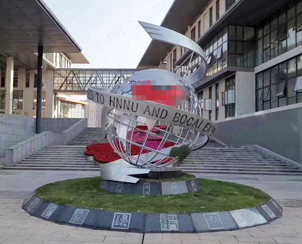 校園不銹鋼地球雕塑,總高2.5-3.0米,適合放置在校園教學樓入口處。